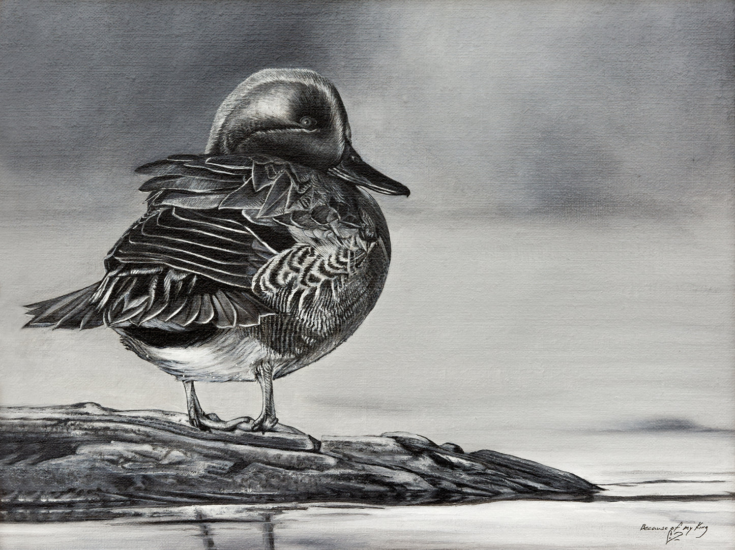 "Green-Winged Teal, Black and White Study"